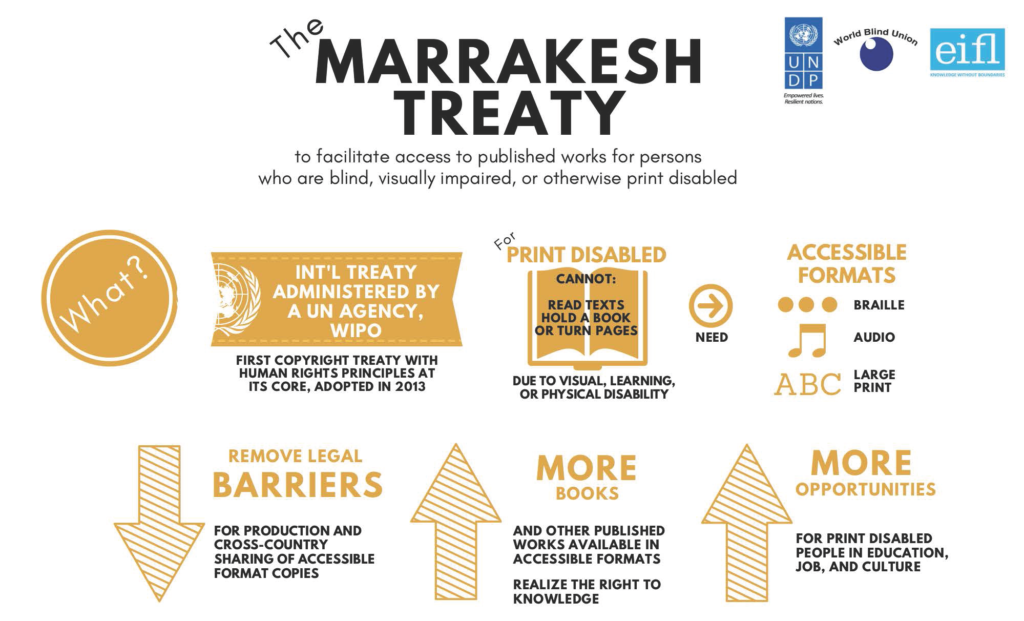 [Electronic Information for Libraries, Link (CC-BY)] To mark the International Day of Persons with Disabilities on 3 December, three global organizations, the United Nations Development Programme (UNDP), the World Blind Union-Asia Pacific (WBUAP) and EIFL developed an Issue Brief for the Asia-Pacific region to raise awareness about the Marrakesh Treaty for people with print disabilities […]